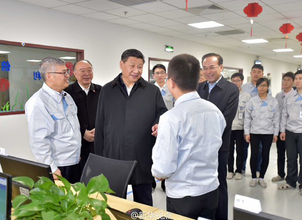 习近平来到重庆京东方光电科技有限公司考察,在柔性屏、超高清显示屏等产品前观看演示,了解8.5代液晶面板生产工艺流程,用放大镜贴着玻璃面板观看里面的电路。他说,五大发展理念,“创新”摆在第一位,一定要牢牢把创新抓在手里,把创新搞上去。