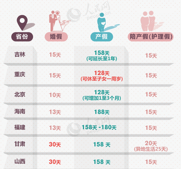 图解:各地婚假产假陪产假怎么休?
