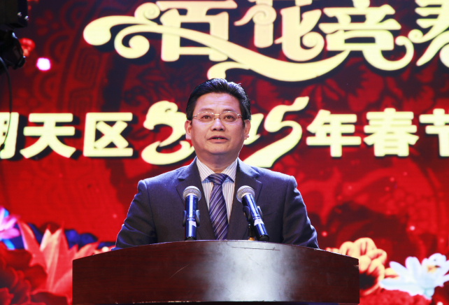 “金马奋蹄载誉归,玉羊启泰迎春至。”蔡邦银在致辞中首先代表中共广元市朝天区委、区人大、区政府、区政协,向全区广大工人、农民、知识分子和各级干部,向老红军、老干部、驻朝天部队指战员、公安干警和民兵预备役人员、烈军属,向各民主党派、工商联、人民团体和各界人士,向一直以来关心、支持朝天发展的社会各界朋友,致以新春的问候和美好的祝愿。蔡邦银指出,过去的2014年,是朝天成功应对严峻考验、追赶跨越成效显著的一年。一年来,在市委、市政府的坚强领导下,区委、区政府团结带领全区干部群众,围绕“加快振兴发展、推进全面小康、建设美丽朝天”主题,突出“稳增势、促改革、提质效”工作基调,大力弘扬“自强不息、团结拼搏、不甘落后、勇争一流”的新时期朝天精神,克服诸多的困难和挑战,奋力推动经济社会又好又快发展,全区呈现出发展提速增效、改革不断深化、民生持续改善、作风明显转变、干群团结奋进、社会和谐稳定的良好局面。