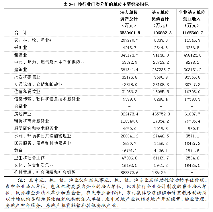 [3] 本公报中的企业法人单位,包括机构类型为企业的法人单位,以及执行企业会计制度的事业法人单位、民办非企业法人单位和基金会,农民专业合作社,农村集体经济组织和除宗教活动场所以外的机构类型为其他组织机构的法人单位。