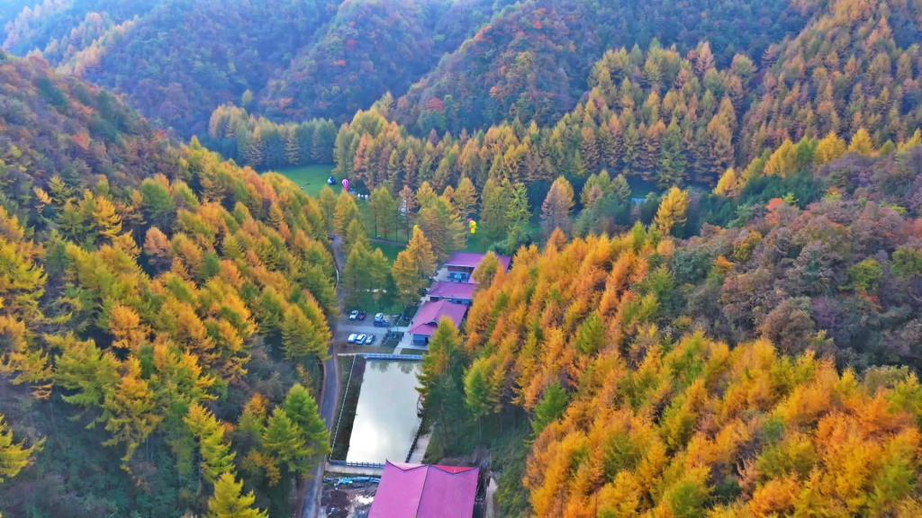 晚秋的鸳鸯池森林公园里,落叶松、野枫、青杠等树木相继披上斑斓的彩衣,放眼望去,沟壑峡谷、山麓坡岭都被“染”上鲜红色和金黄色,金黄的落叶松、火红的野枫树、墨绿的松、五彩缤纷,让人陶醉,吸引众多省内外游客前来打卡、休闲。