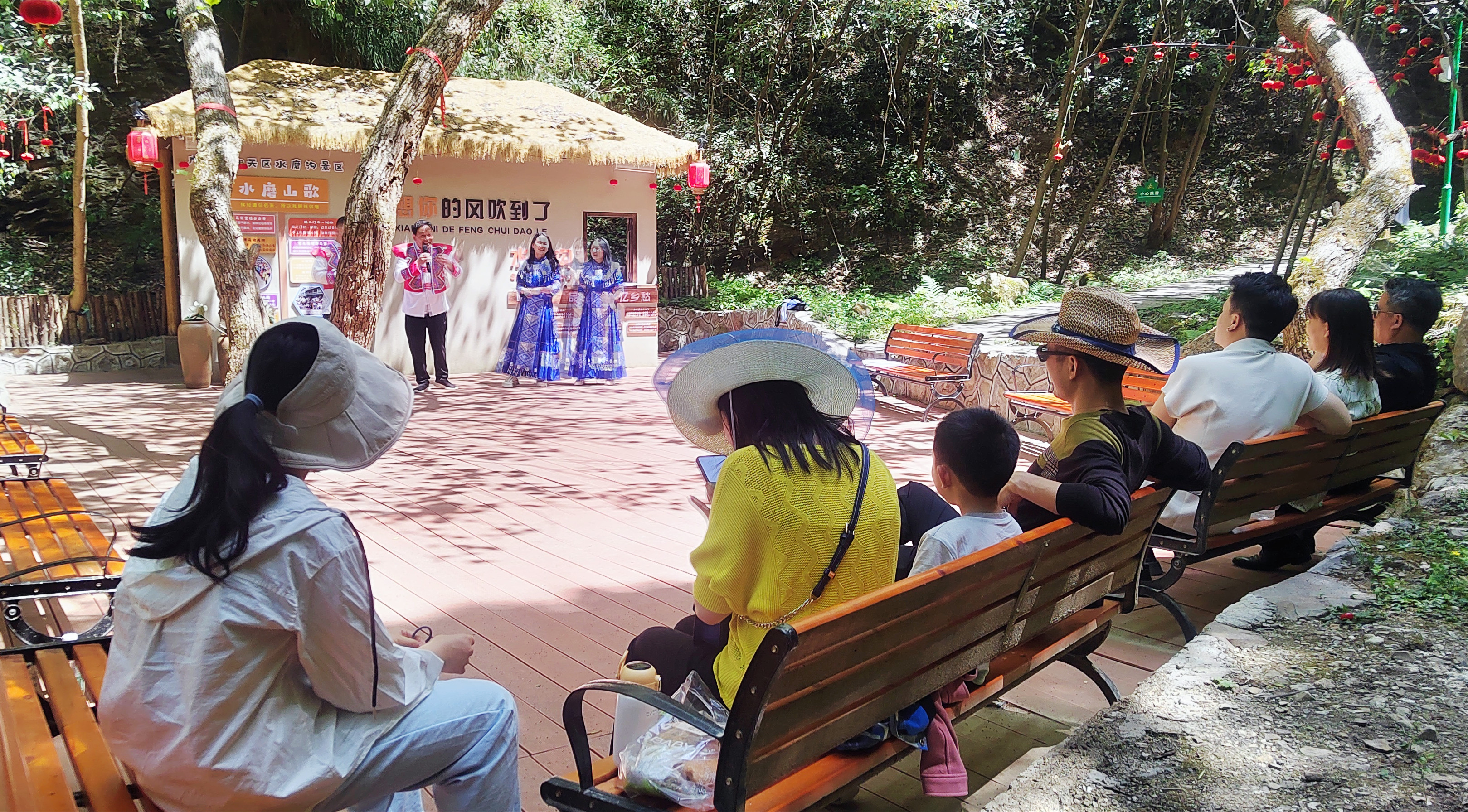“唱山歌咧,这边唱来那边和……”景区最为热闹的地方,那一定是“歇歌台”,网红歌手正带领游客对唱山歌。28首精心挑选的歌曲,让不会唱歌的人也能轻松加入。微风吹过林间,歌声伴着鸟鸣,仿佛给心灵做了一次深度SPA。来自陕西的游客刘明感叹:“压力一下子全没了,这才是假期该有的样子!”