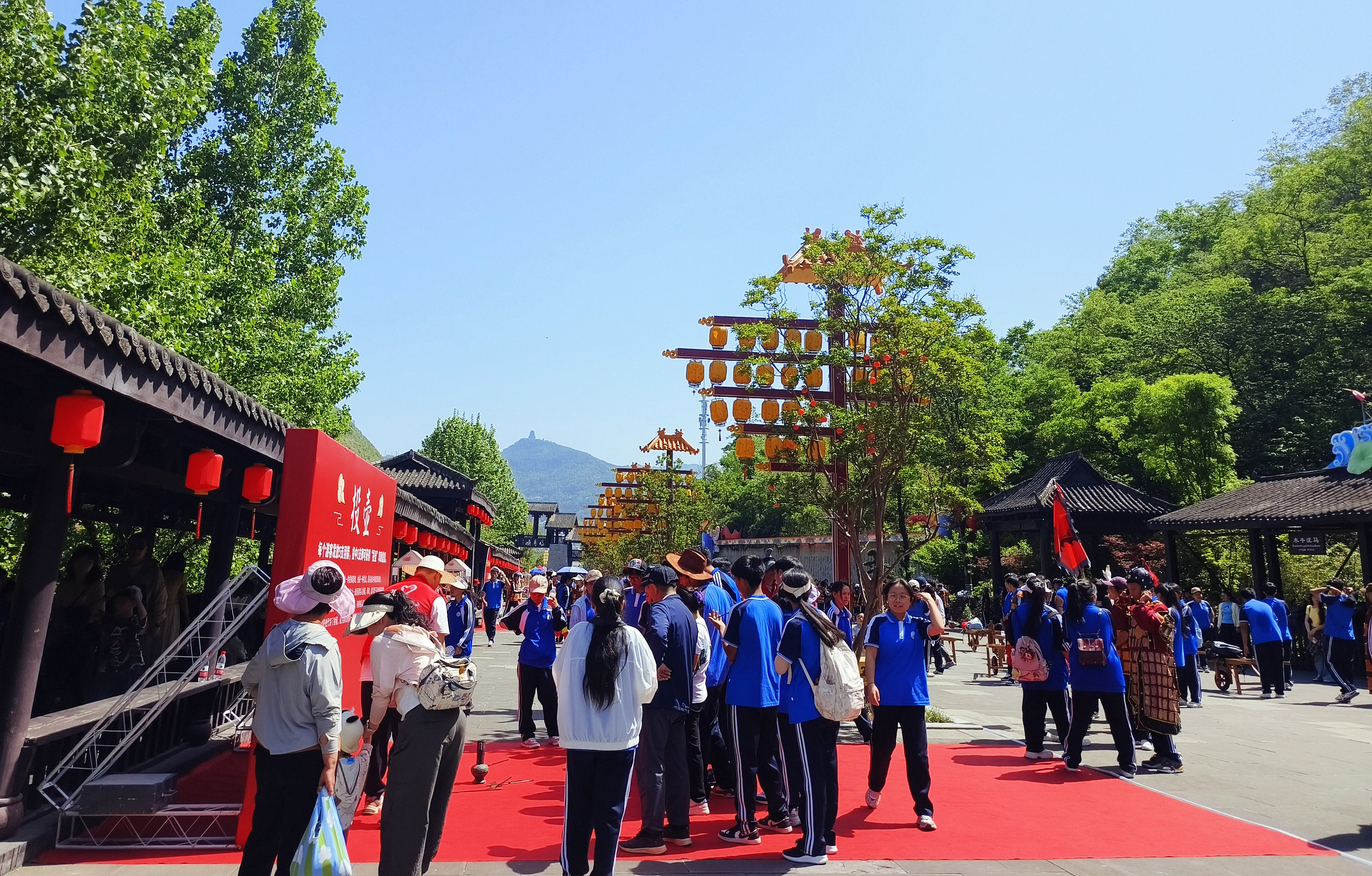 值得一提的是,从蜀风广场到演武场到陈列馆沿线,景区精心设置了投壶、好运乒乓球、捶丸、蹴鞠4个国风通关打卡体验区,游客完成挑战即可获得精美的《通关文牒》。更贴心的是,景区还在景区入口、明月酒肆两个点位准备了唐风汉服换装区,让游客真正“变身”古人,漫步在千年古栈道上,每一步都是风景,每一帧都是大片。