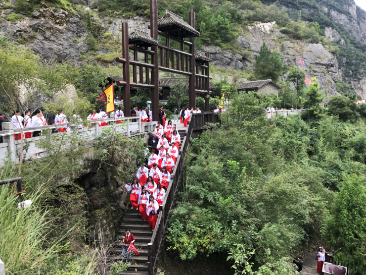金秋九月,秋高气爽、明月峡景区内丹桂飘香,阵阵战鼓轰鸣,身穿战袍盔甲的武士站立城楼两旁,喜迎来自五湖四海身着汉服的宾朋游客进入景区体验实景穿越。活动当日,明月峡、雪溪洞景区人山人海、热闹非凡,据统计,两景区当日共接待来自重庆、四川、陕西、甘肃等不同省市地区的游客上万人次。