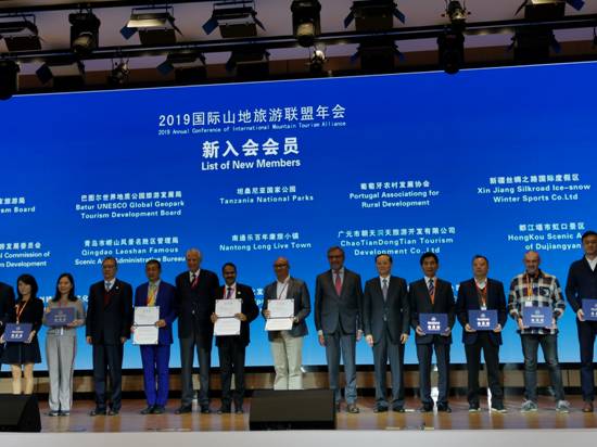 “2019国际山地旅游联盟年会”会员授牌现场 王雪蓉/摄