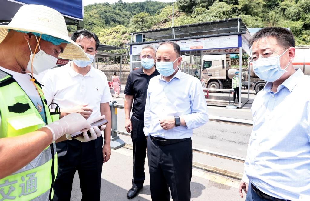 来到G108线七盘关疫情防控查验点,何树平向查验点工作人员详细了解过往司乘人员扫码登记、“入川即检”防控措施落实等情况。他指出,我市作为四川的“北大门”, 要毫不松劲执行“入川即检”要求,严格落实测体温、戴口罩、扫码亮码等防控措施,从严执行重点行业、一线工作人员的核酸检测频次要求。针对过境大货车较多等实际,要进一步加强与有关方面的沟通对接,提前做好车辆合理分流,科学调配力量,为过往司乘人员提供好“暖心服务”。