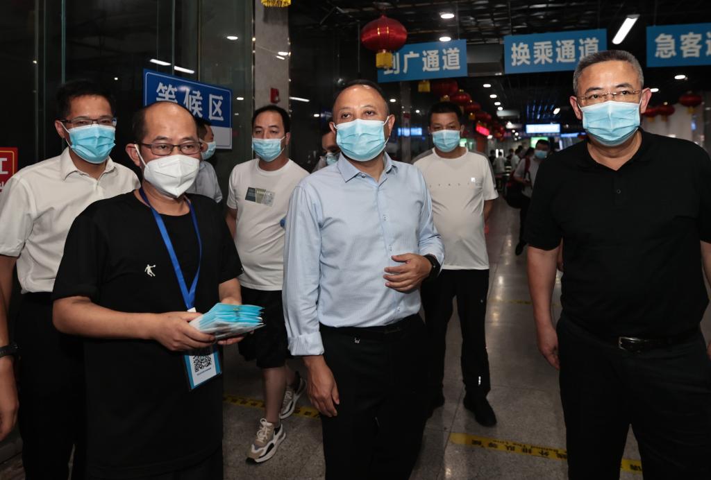 “每天省内涉疫地区来(返)广人员有多少?”“在核酸检测点做核酸检测需要多长时间?”……在广元火车站,何树平走进出站口、旅客分流通道、核酸检测点等区域,仔细向现场值班值守人员了解旅客分流、人员核查等情况,听取他们对落细落实疫情防控措施的意见和建议。他指出,广元火车站是我市疫情防控的重要屏障,要切实加强值班值守,进一步优化旅客分流、人员核查等的方式方法,切实落实好省内外涉疫地区来(返)广人员落地即检,确保应检尽检。