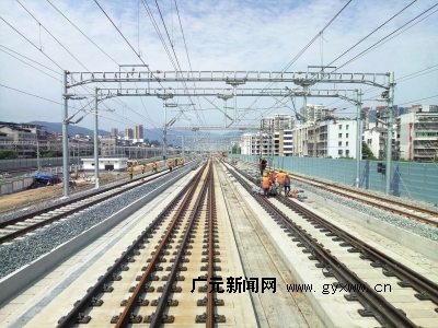 目前,西成客专广元段建设总体推进顺利,截止6月初全线路基、桥梁、隧道已基本建设完成;无砟轨道、钢轨铺设焊接锁定全部完成;通信、信号、电力工程已基本完成,变配电所全部完成;接触网工程完成98.1%;四电房屋完成99%。路基、桥梁、隧道等线下工程的静态验收已全面完成。同时,除广元车站直接引入外,青川、剑门关、朝天3座车站的主体工程和站前广场建设已接近尾声。车站站房工程中广元站、剑门关站建设已基本完成,朝天站站房主体结构全面完成,站台装修完成98%。青川站站房主体结构全面完成,站房装修完成97%。青川、剑门关、朝天车站站前广场及配套工程预计7月底完工,能满足与西成客专同步投入验收和使用。