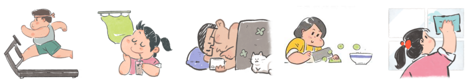 《就地过年指导手册》里,通过一组gif动图,展现就地过年的不同“招式”。手绘的画面人物鲜活、图案生动,被网友们收藏为表情包,出现在日常聊天场景中。