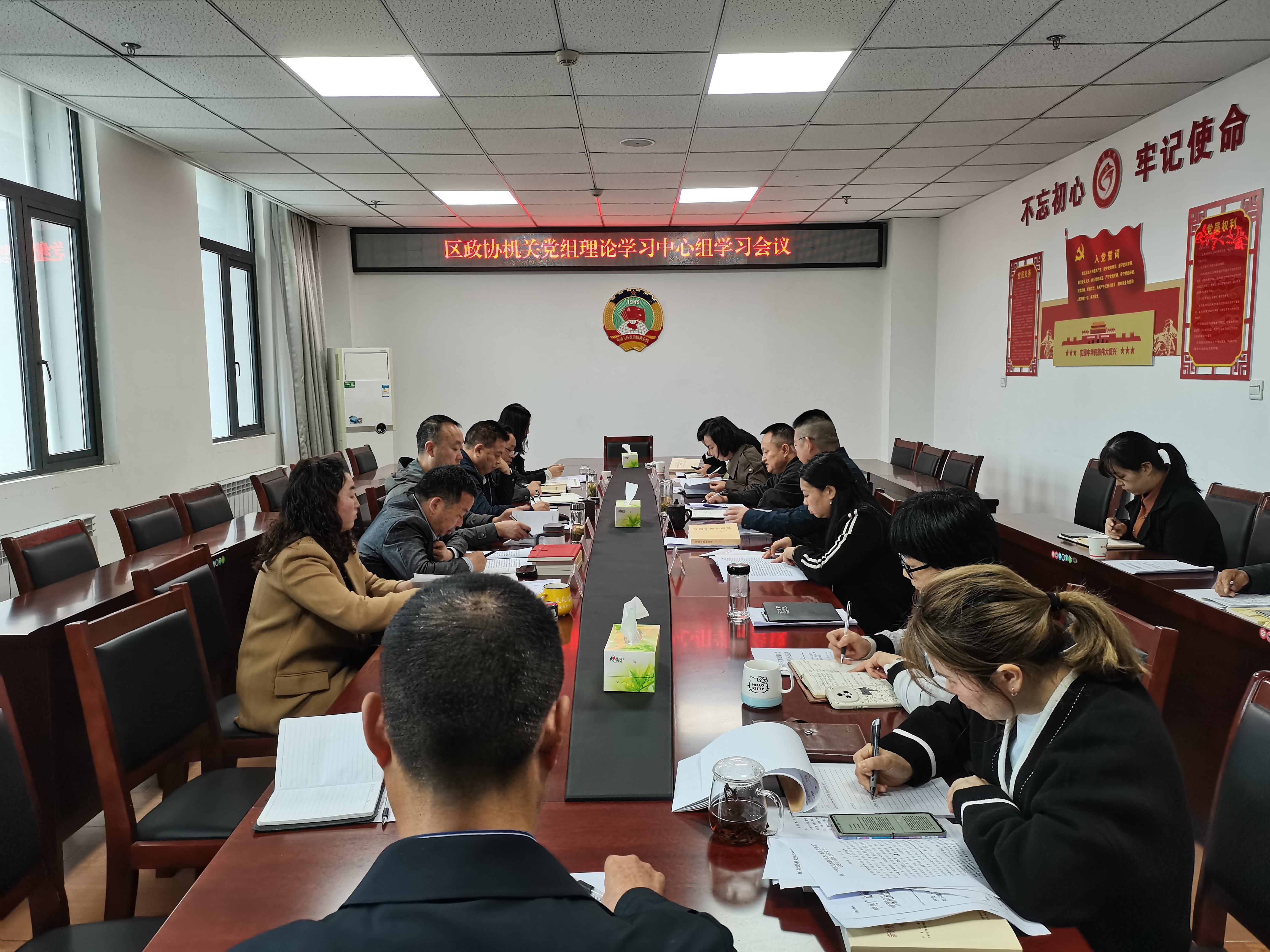 10月31日,区政协机关党组召开理论学习中心组(扩大)学习会议,围绕“牢记嘱托·感恩奋进”“四下基层”和“推动发展新突破·路径在哪里”等内容开展专题研讨。