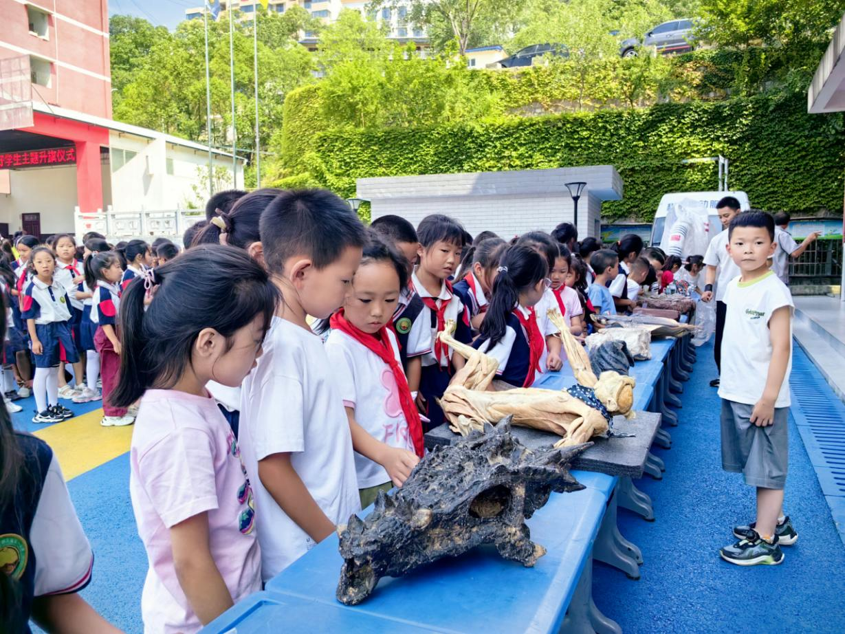 在朝天镇第一小学、两河口镇小学,四川科普文创科学技术研究中心专家为两所学校学生们开展了“眺望未来”科普讲座,现场展示了机器狗、动植物标本等,以生动的科创道具展览,带学生走进神奇的微观世界,开启科学探索之旅。
