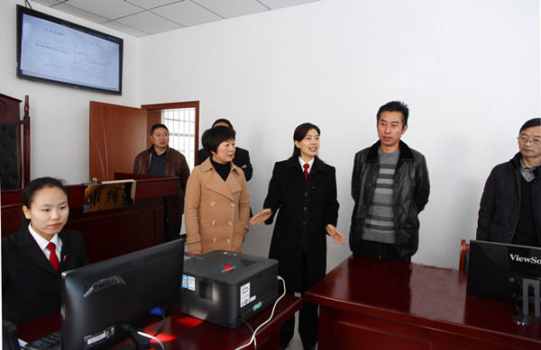 视察组一行深入羊木镇女子法庭、朝天场镇民生法庭以及区人民法院实地参观了其办案大厅、办公设施和文化建设等情况,查阅了预立案、巡回审判、审判公开、亲情寄语等相关资料,观看了多功能数字化法庭、庭审直播、裁判文书上网等演示过程。