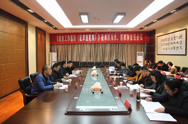 区政府办、区财政局、区发改局分别就《政府工作报告(征求意见稿)》、《2016年财政预算执行情况和2017年财政预算(草案)的报告(征求意见稿)》、《2016年国民经济和社会发展执行计划情况及2017年计划(草案)的报告(征求意见稿)》的起草情况作了说明。与会人员围绕三个《报告》,结合我区实际展开热烈讨论,具体提出了修改意见,并就2017年我区经济社会发展积极建言献策。大家一致认为,《政府工作报告(征求意见稿)》全面贯彻了党的十八大和十八届三中、四中、五中、六中全会,省委十届八次、九次全会,市第七次党代会、市委七届二次全会及区第七次党代会、区委七届三次全会精神,《报告》全面总结了我区2016年的工作,总结成绩实事求是,分析问题客观准确,谋划2017年工作重点突出,符合全区经济社会发展实际,具有很强的科学性、现实性和指导性。同时,与会人员还围绕工业发展、旅游商贸、项目建设、农业特色产业、基础设施、脱贫攻坚等方面工作提出了中肯的意见和建议。