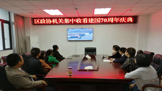 10月1日上午,区政协机关干部集中收看庆祝中华人民共和国成立70周年庆典仪式直播,认真聆听了习近平总书记重要讲话,观看了盛大的阅兵仪式和群众游行。
