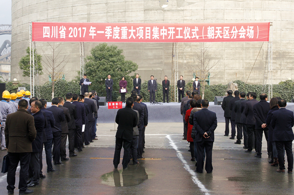 本网讯(王莉萍)2月27日上午,四川省2017年一季度重大项目暨广元市朝天区2017年一季度项目集中开工仪式在朝天经济开发区大巴口工业园隆重举行。市委常委、区委书记蔡邦银出席仪式并宣布开工,区委副书记、区长伏玉琼致辞,区人大常委会主任梁黎、区政协主席张晓春出席仪式,区委副书记罗凌云主持仪式。