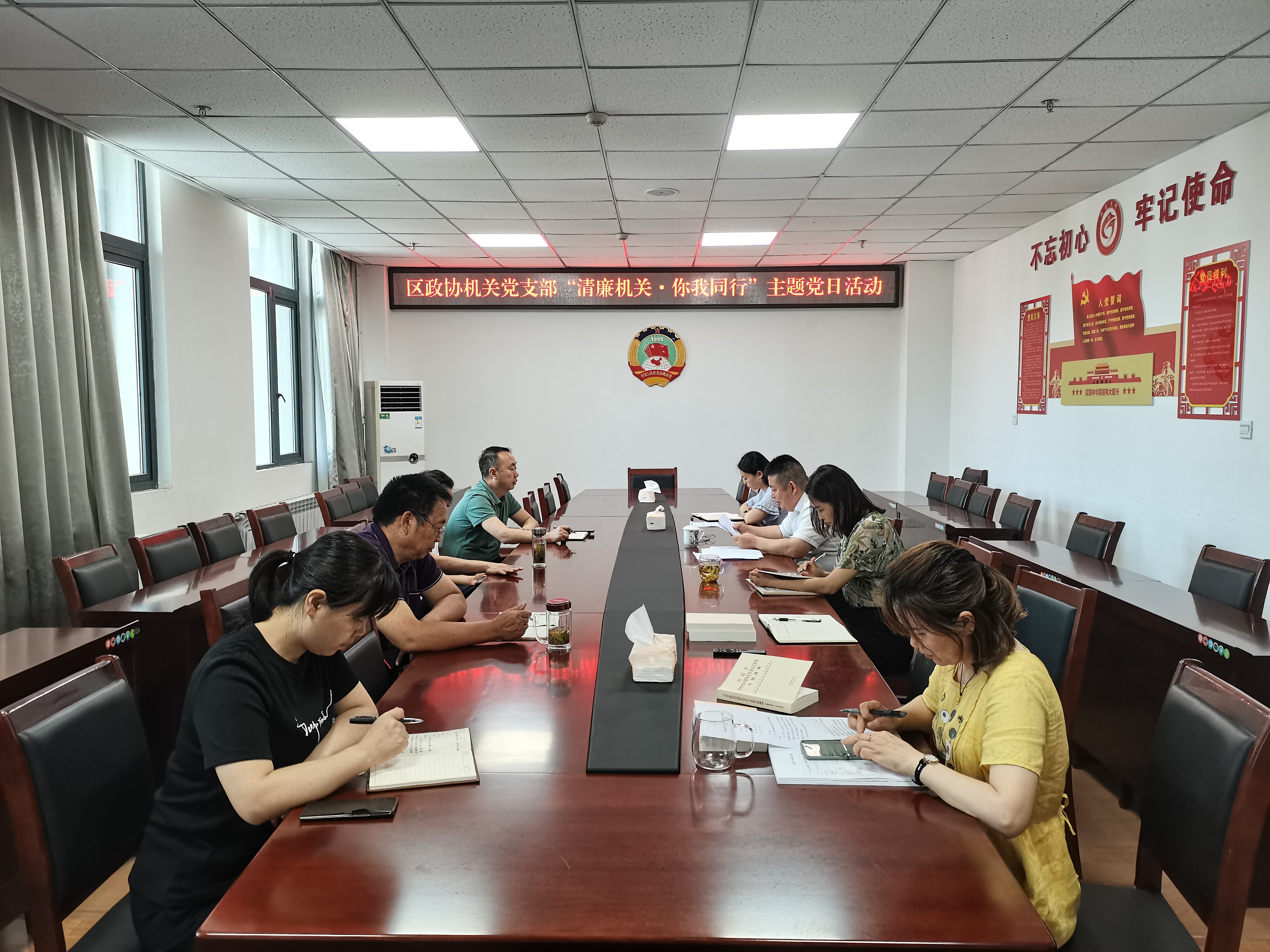 7月28日,区政协机关党支部组织开展“清廉机关·你我同行”主题党日活动。区政协机关党支部书记赵俊主持并讲廉政党课。
