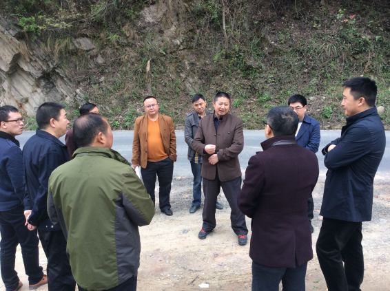 朝天区政协副主席华昌桂(右四)与梯子岩村组干部研究脱贫规划