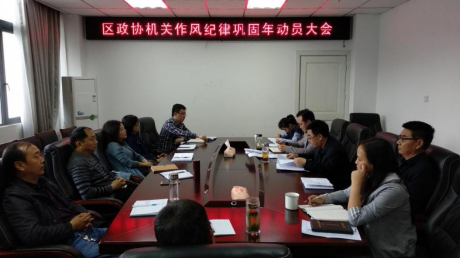 为深入贯彻落实区委“作风纪律巩固年”活动要求,进一步加强机关作风纪律建设,提高工作效能,4月4日,区政协机关召开作风纪律巩固年动员大会。区政协秘书长、办公室主任刘玉国主持会议,机关全体干部职工参加会议。