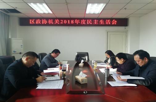 按照区委统一安排部署,1月31日,区政协机关党组班子召开2018年度民主生活会。区政协秘书长、机关党组书记刘玉国主持会议,机关党组成员贺全贤、马坤参加会议。