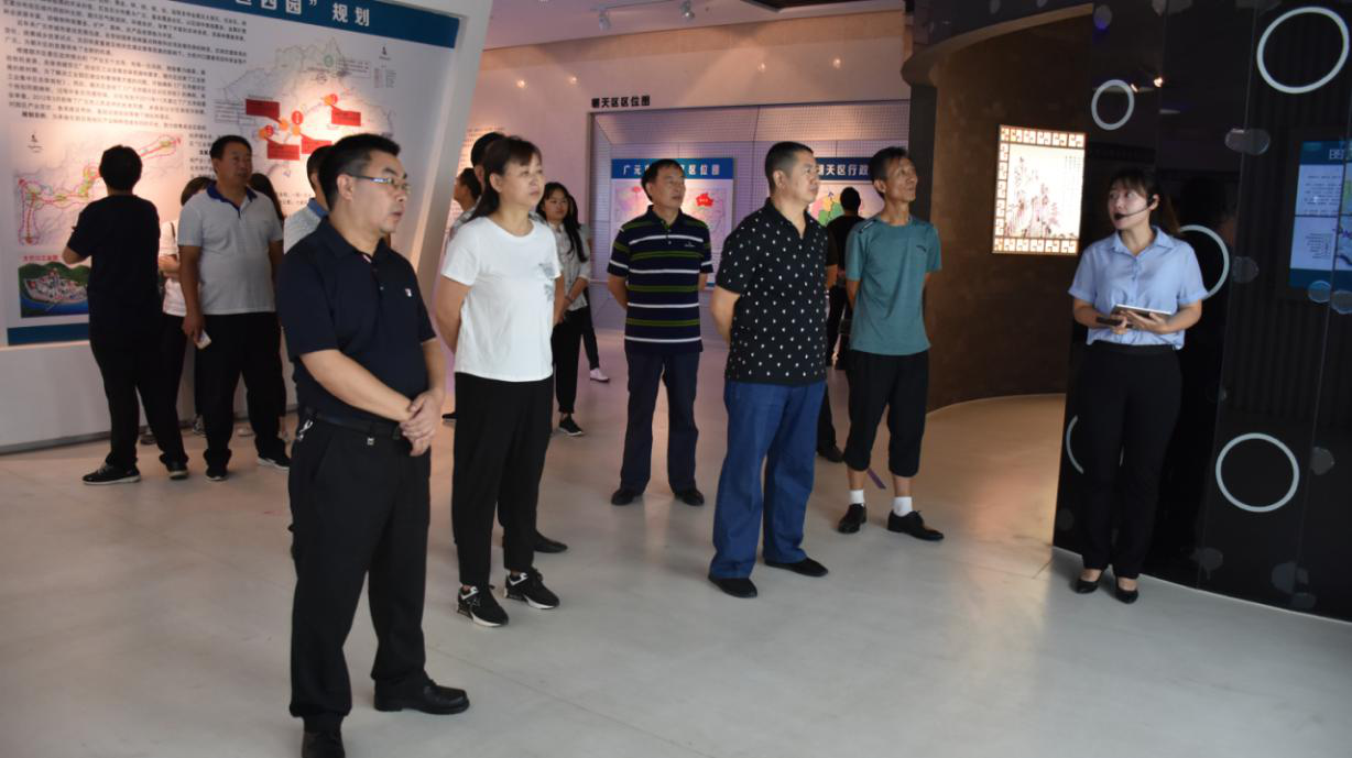 全体党员和机关非党干部职工先后参观了城乡规划展览馆、罗圈岩村易地扶贫搬迁安置点、西成高铁朝天站、转斗镇何家坝小区、两河口乡现代农业园区、两河口村村史馆、李家乡家风家训馆等现场点,观看了建区30周年成就展,详细了解了近年来朝天经济社会发展情况。