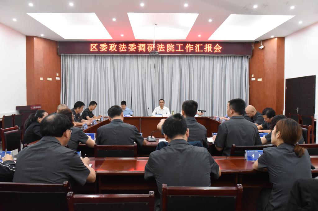 调研中,仲满成对区法院各项工作予以充分肯定。他指出,区法院政治立场坚定,贯彻落实党中央和省委市委区委决策部署坚定不移,领导班子团结、队伍精干、管理规范,履行审判职能落实主责主业成效显著,服务中心大局、保障民生福祉、化解矛盾纠纷等各项工作有力有序有效。就做好下一步工作,仲满成要求,一要对党绝对忠诚。坚决树牢“四个意识”、坚定“四个自信”、做到“两个维护”,紧紧围绕全区中心大局,找准结合点、着力点,充分履行司法审判职能作用。二要勇于担当作为。以更高标准、更新理念、更高效率,勇于面对、善于处理复杂困难问题,切实维护公平正义。三要增进团结协作。进一步增强班子队伍凝聚力、战斗力,进一步加强与区级政法各单位、区级相关部门、毗邻县区法院的沟通协调,着力营造良好的工作环境。四要不断提升能力。切实强化学习培训和对外交流,高效推动基础平台建设,建立健全并严格执行审判工作制度机制,着力推进审判工作依法高效开展,充分彰显审判工作的效率与公平。五要坚持严于律己。建立健全监督制约机制,切实强化自身约束,全力做到依法干净履职、清白公正审判。