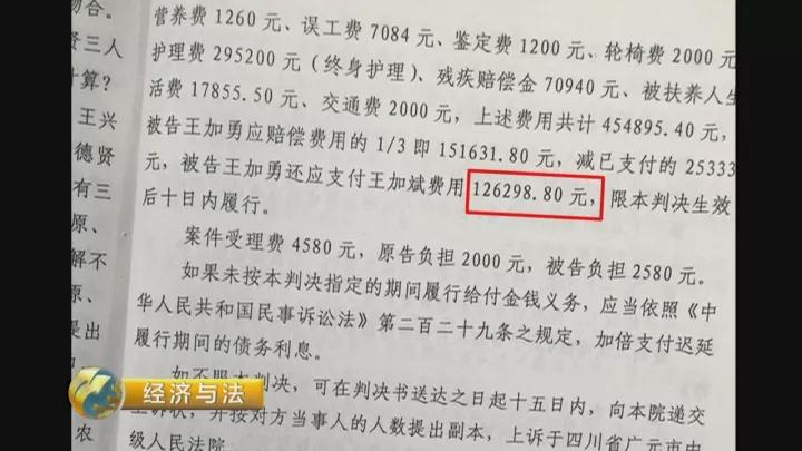 法院认定王加斌、王加勇等三人合伙关系成立,据此,王加勇需承担各项赔偿费用的1/3。最终,法院一审判决,被告王加勇须支付王加斌赔偿款12万6千余元。王加勇不服,提起上诉。2009年7月,广元市中级人民法院作出终审判决:驳回上诉,维持原判。这12万6千余元成为了此后,王家两兄弟长年博弈的焦点,也成为了朝天区人民法院执行局八年执行路的起点。
