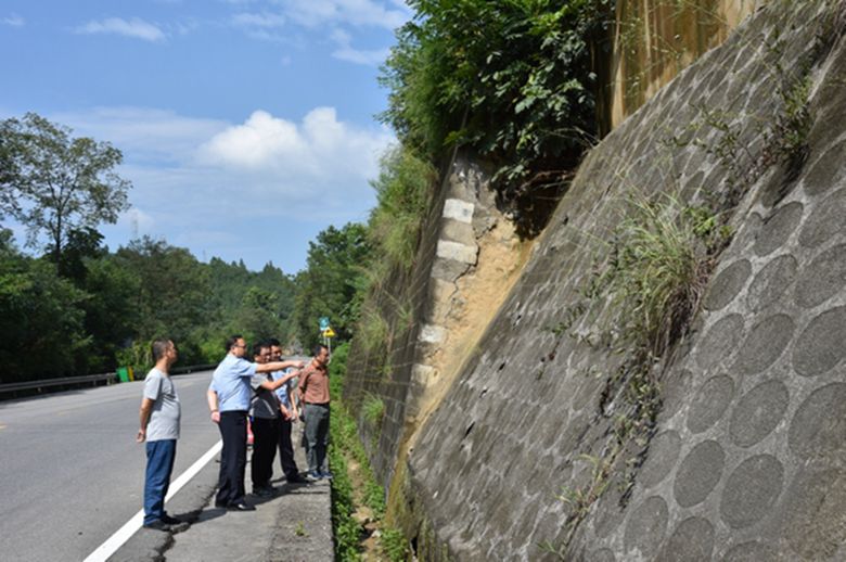 在G108二专线1824+400米处,排查组一行查看了二专线路基、堡坎大面积裂缝情况,针对周边居民集聚、车辆流速较大等现状,排查组要求相关部门及时对隐患点进行整改,形成整改方案,尽快落地落实,确保周边群众安全生产生活。