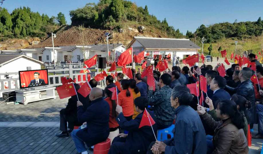 杨平顺与罗圈岩村群众在安置点广场集中收看党的十九大开幕大会