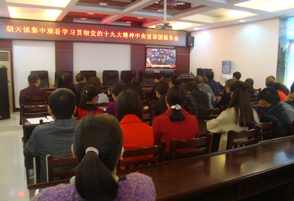 朝天镇集中收看学习贯彻党的十九大精神中央宣讲团报告