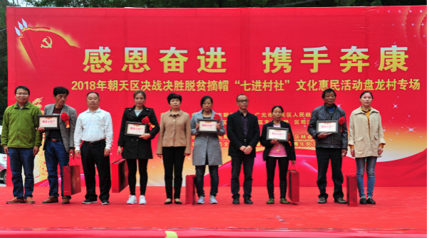 在“七进村社”文化惠民活动中,区委宣传部、区司法局、区卫计局、区文广新局、区林业和园林局、区农业局等部门分别设立了咨询台、宣传展台,向群众开展了区委七届五次全会精神等政策宣讲、法律知识宣传、种养殖技术咨询、义诊活动,区内的书法家们还为群众赠送了倡导乡风文明的书法作品。《不能争当贫困户》、《勤劳致富最骄傲》、《小康路上追梦人》等一批接地气的文艺节目表演赢得了在场群众的阵阵掌声。