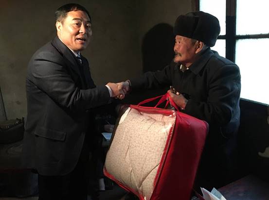 田新华和部门负责人深入到离退休老干部、农村老党员和困难党员、优抚户、特困户家中,送去了棉被、大米、食用油等生活物资和现金,带去了党和政府的关怀及问候,帮助他们安全温暖过冬。(人事代表工委)