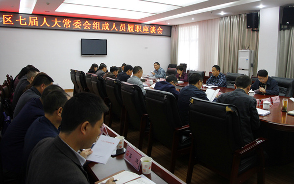 本网讯(王莉萍)10月19日下午,区七届人大常委会召开组成人员履职座谈会。区人大常委会主任梁黎出席会议并讲话,副主任王祝远主持会议,副主任田新华、邝庆林出席会议,25名区七届人大常委会委员参加会议。