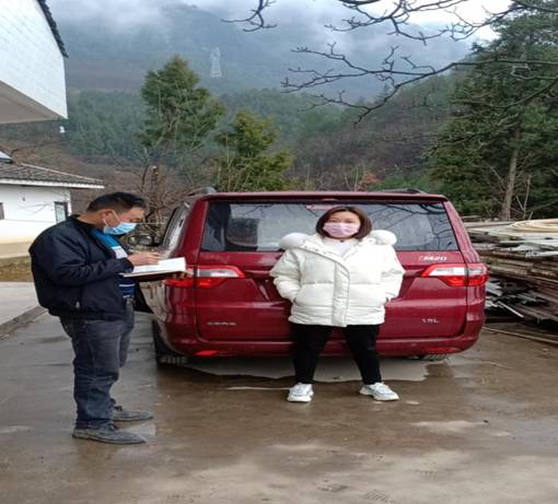 镇人大代表、高车村贫困户代表刘贤清开展车辆巡查登记工作。(作者:中子镇 罗凯)