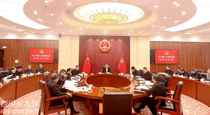 会议传达学习了习近平总书记在中共中央政治局会议上、在中共中央政治局第十一次集体学习时、在天津看望慰问基层干部群众时、在2024年春节团拜会上、在中央全面深化改革委员会第四次会议上的重要讲话精神,以及省级领导干部和市厅级主要负责同志推动高质量发展专题读书班精神,强调要认真学习总书记重要讲话精神,深学细悟总书记关于发展新质生产力推动高质量发展等方面的论述,贯通领会“八个深刻把握”的精髓要义,持续在学懂弄通做实上下功夫,立足四川实际,结合人大职能抓好贯彻落实。要旗帜鲜明坚持党中央集中统一领导这个最高政治原则,不断提升做好新时代人大工作的政治站位和理论水平。要坚持围绕中心服务大局,统筹做好立法、监督、代表等工作,助推经济社会发展各方面重点任务落地落实。要全面加强自身建设,深入贯彻落实习近平总书记关于建设“四个机关”和省委“五个作表率”要求,持续巩固提升自身建设水平。