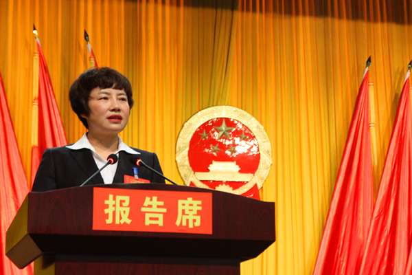 蔡邦银主持大会并宣布开幕 伏玉琼作政府工作报告