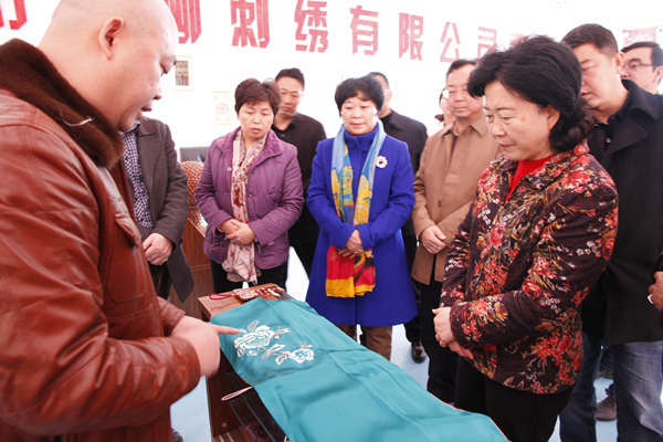 梁黎详细汇报了全区文化产业发展情况。她说,长期以来,朝天区委、区政府始终高度重视文化建设,着力打造蜀道、养生、民俗、红色四个特色文化名片,麻柳刺绣作为国家级非物质文化遗产,保护好这一传统文化品牌,对朝天文化、旅游乃至整个产业发展具有深远意义。广元麻柳刺绣有限公司前期运行较好,但目前的生产经营存在一些问题和困难,在国家级非物质文化遗产麻柳刺绣的保护和传承工作中,成效还不很明显,投入力度亟待加强。