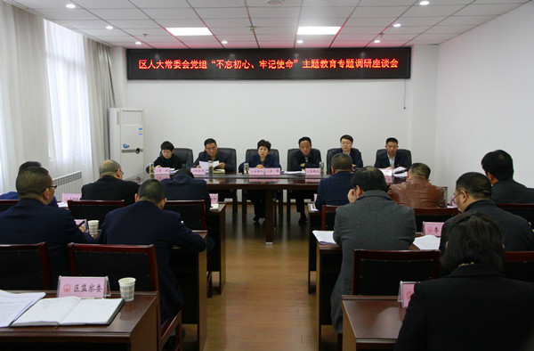 11月4日,区人大常委会党组书记、主任梁黎主持召开区人大常委会党组“不忘初心、牢记使命”主题教育专题调研座谈会。区人大常委会副主任王祝远、田新华、邝庆林,区人民检察院检察长李红,区人民法院党组书记、代理院长余义涛参加会议。