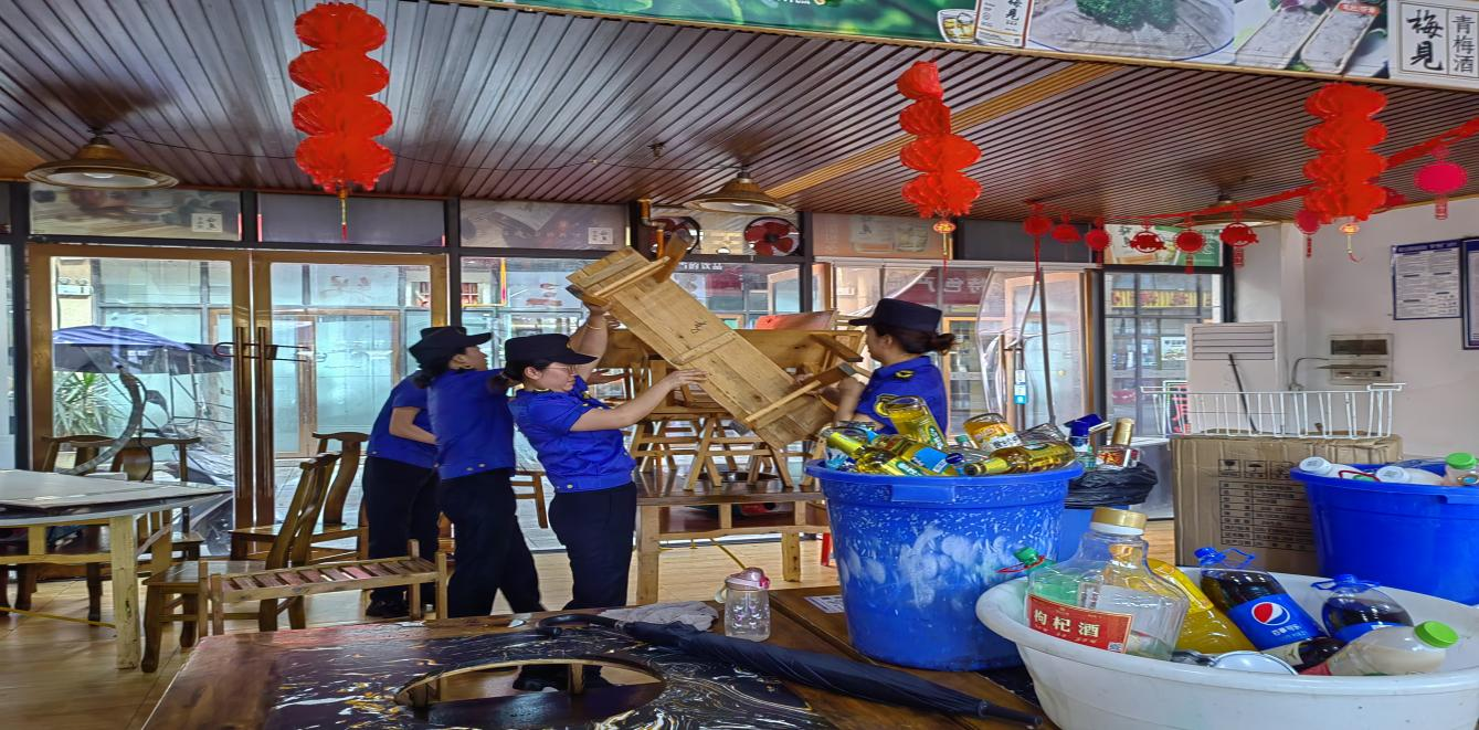 二是迅速恢复生产。组织执法人员深入城区内受汛情影响重点路段商铺、住户等,帮助受影响商家、居民搬运物品、清点财产,确保市民群众及时恢复正常生产生活。